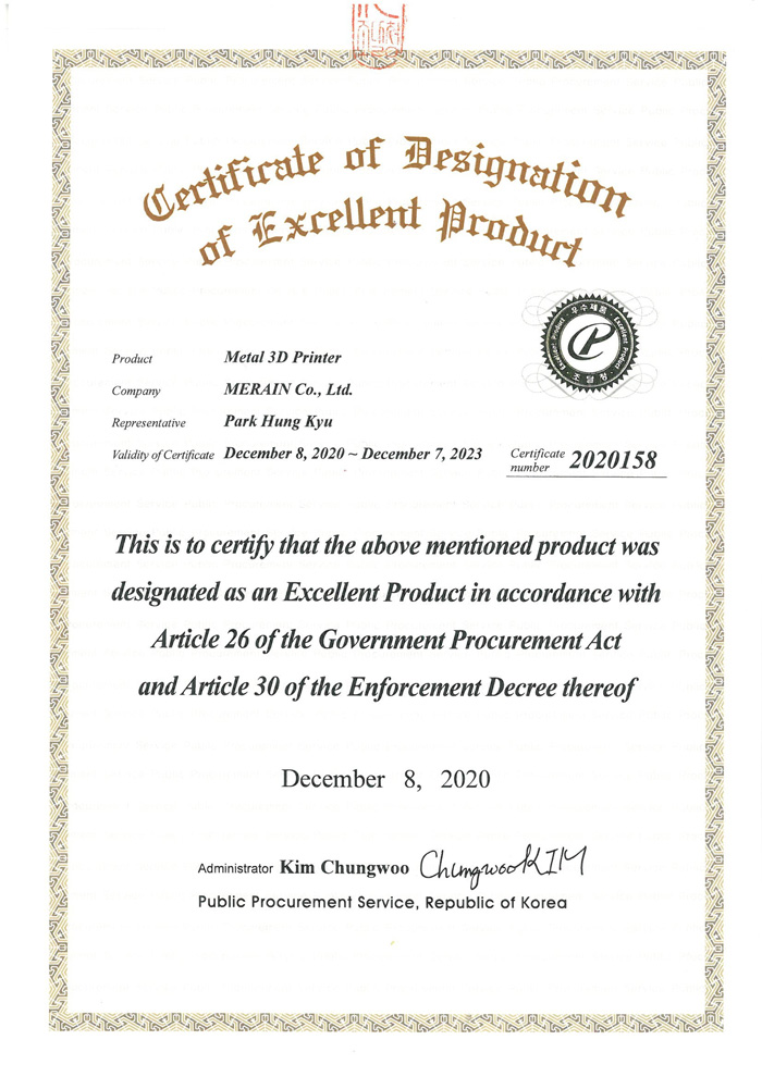 특허증 [불순물 제거부를 포함하는 3차원 조형물 제조장치]